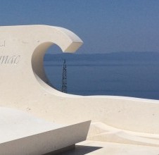 Gefertigt aus weißem Brač-Stein, einem Material, das für Langlebigkeit, Eleganz und Authentizität steht, erhebt sich die stilisierte Welle sanft aus der Komposition. Dieses Element trägt eine starke Symbolik: Frieden, Ewigkeit und die tiefe Verbundenheit mit dem Meer, die Podgora und die dalmatinische Küste prägt.