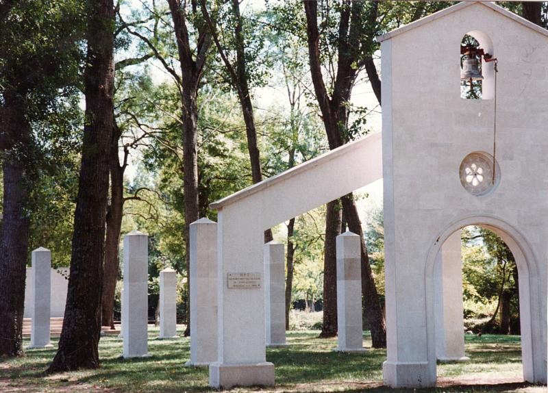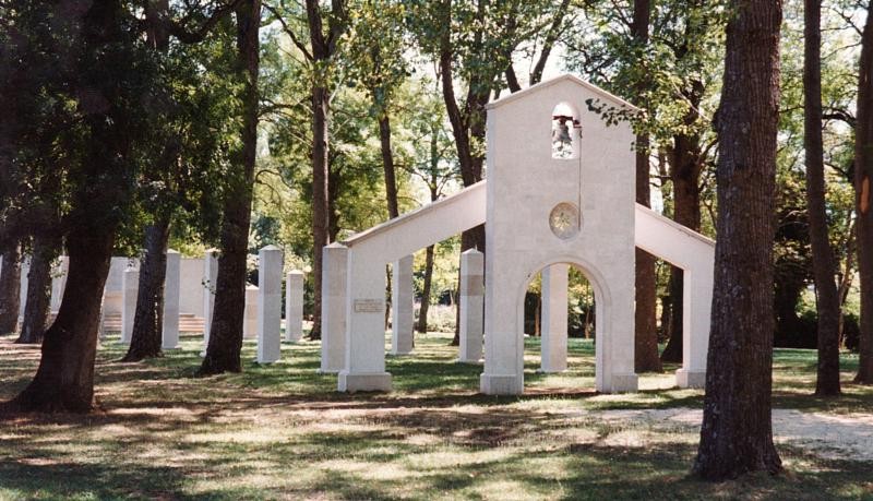- one of the most distinctive projects carried out by our workshop is the "Green Cathedral" in Prološac – a contemporary sacral structure of exceptional symbolism and architectural value, entirely made of white Brač stone. This open-air cathedral, designed without a roof, thoughtfully unites natural space with spiritual meaning, leaving the sky above worshippers as a symbol of God's presence and eternity. The project was designed by renowned Croatian architect Edo Šegvić, while all stone elements were produced and executed by our workshop under the leadership of Dražen Jakšić. Due to the planned opening on the Feast of the Assumption, one of the most important days in the Christian calendar, the timeframe for construction was extremely short. The entire stone structure, including all symbolic and architectural components, was completed in just 28 days. We overcame this challenge through precise planning, excellent team coordination, and the full commitment of our craftsmen, who worked in intensive shifts to meet the deadline. The "Green Cathedral" incorporates all the essential features of Christian sacral architecture, shaped through a contemporary minimalistic approach. The entrance is marked by a stone bell gable and a carved rosette, while the interior includes a stone altar, tabernacle, and baptismal font. A central element of the space is the series of fourteen stone columns, symbolising fourteen centuries of Christianity. All elements are finely polished, highlighting the purity of form and the luminous quality of the material. Nestled in a wooded environment, the "Green Cathedral" merges spiritual and natural atmospheres, creating a unique open-air place for prayer, reflection, and community. This project stands as one of the most striking examples of contemporary sacral architecture in Croatia and one of the most meaningful achievements of our workshop, where stone, faith, nature, and modern design come together in perfect harmony.