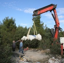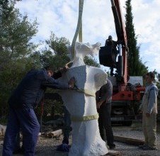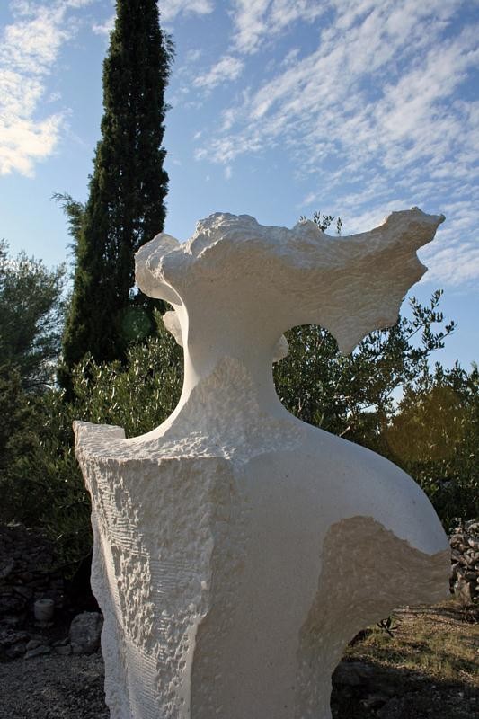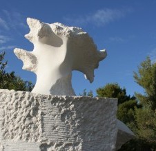 - the monument to fallen defenders “Knight” is one of the most recognisable monumental sculptures created by academic sculptor Lovre Jakšić. This monumental sculpture, 220 cm in height, is carved from white Brač stone, a material long used for Croatia’s most important cultural and memorial works. The sculpture of the knight expresses strength, dignity, and symbolic pride – qualities that fully reflect the character of Croatian defenders. This monument to fallen defenders was erected by the Veterans Association of the Homeland War – Brač in the memorial park Golo brdo above Sutivan. The monument was created as a permanent expression of gratitude to the fallen Brač knights and to all defenders who lost their lives for Croatia’s freedom. In this quiet natural setting, the power of stone and the calm of the landscape merge into a dignified space of remembrance, where the monumental sculpture stands as a symbolic guardian. The monument was installed on the occasion of the 20th anniversary of expelling the heavily armed Yugoslav Navy from the Split maritime zone, a historic event in which Brač defenders played a significant role. The sculpture of the knight in white stone carries the story of courage and resilience. The form reveals a strong silhouette, an upright posture, dynamic lines and contrasts between rough and polished surfaces, giving the sculpture vitality and monumental character. The path to this monumental sculpture leads across stone slabs embedded in the ground. Each slab bears engraved dates and key events from the Homeland War, carved by hand. This creates an additional memorial sequence that guides visitors step by step towards the meaning of the monument. The slabs represent a chronology of bravery, while the sculpture of the knight represents its symbolic culmination. The monument to fallen defenders “Knight” is therefore much more than an artwork. It is a monumental sculpture, a permanent memorial and a powerful visual symbol of Brač. Created from white Brač stone by academic sculptor Lovre Jakšić, it unites art, tradition and remembrance – values that remain woven into the landscape and collective memory.