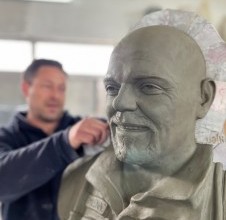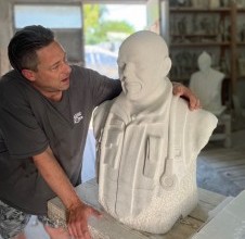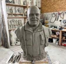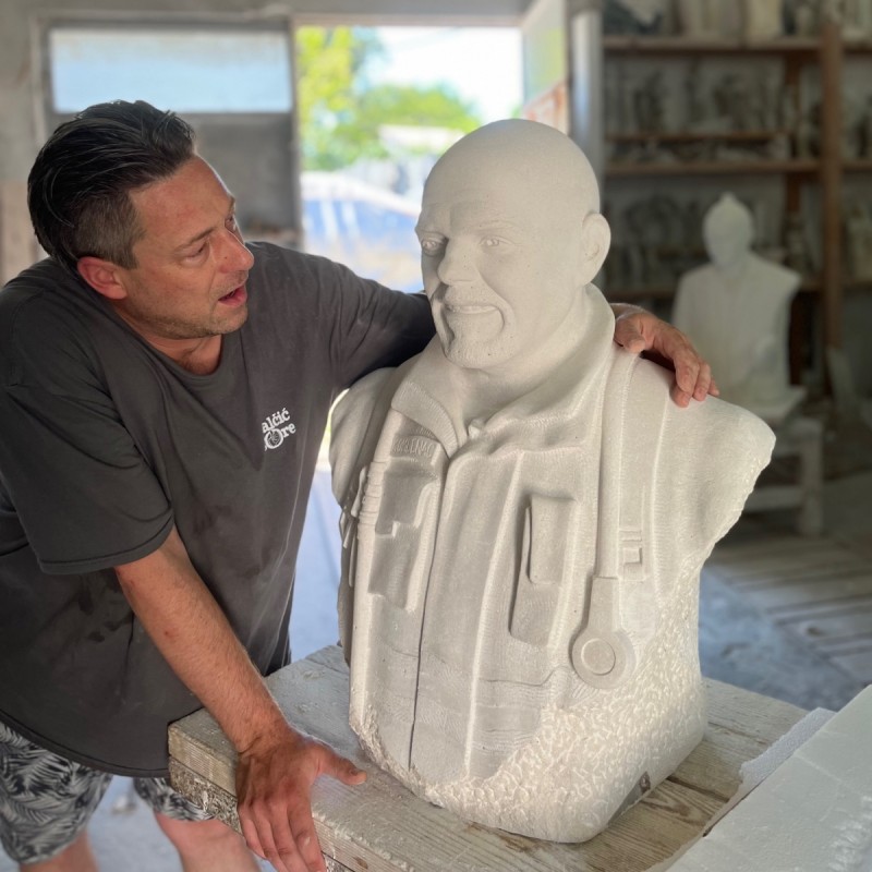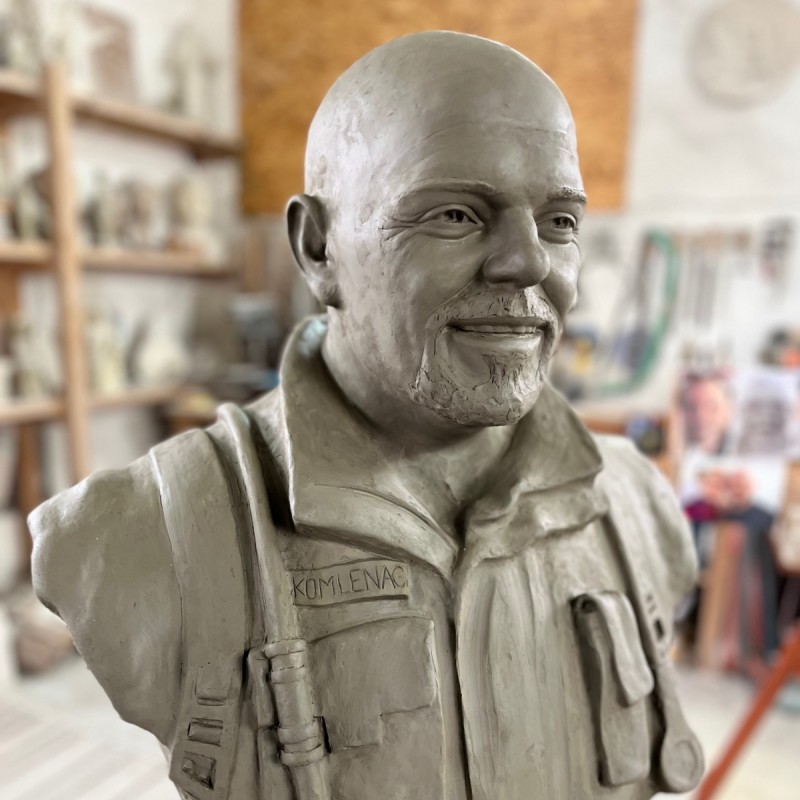 Lovre Jakšić, s bogatim iskustvom u izradi figurativnih skulptura i portreta u kamenu, redovito surađuje s državnim institucijama i lokalnim zajednicama. Njegov pristup oblikovanju portretne skulpture temelji se na preciznosti, dubokoj empatiji prema osobi i vještini u radu s kamenom. Otkrivanje spomenika bilo je posebno emotivno – uz prisustvo vatrogasaca, vojske i obitelji, popraćeno medijski i dostojanstveno.