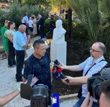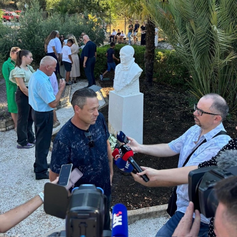 Kamena bista Gorana Komlenca još je jedna snažna i simbolična skulptura od bijelog bračkog kamena, koja zauvijek ostaje u prostoru kao podsjetnik na osobnu hrabrost i žrtvu u službi drugima.