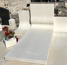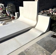 Središnji element ovog spomenika je obla linija koja se proteže lapidom i lagano savija prema natrag, poput lista papira koji se nježno podigao pod blagim povjetarcem. Upravo ta linija definira vizualni karakter grobnice – mekoću unutar čvrstog kamena, pokret unutar trajnosti, suptilni prijelaz između vertikale i horizontale.