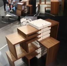 Kamena polica arhitekta Stjepka Rošina istaknula se konceptualnim pristupom: kameni element čini stabilnu jezgru, dok su drveni segmenti potpuno pomični. Njihovim pomicanjem mijenja se cjelokupan izgled i funkcija police, čineći je interaktivnim i vizualno promjenjivim dizajnerskim objektom.