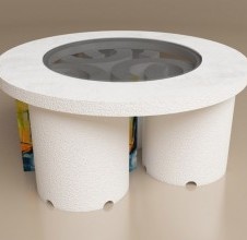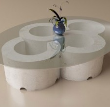 Među najistaknutijim radovima nalaze se kameni stolovi u dvije varijante — jedan ovalnog, drugi okruglog oblika — čiji kameni postamenti stvaraju stabilnu, skulpturalnu formu na kojoj se naslanja elegantna staklena ploha. Ovi stolovi predstavljaju savršen primjer kako kameni stol može biti i funkcionalan i umjetnički objekt.