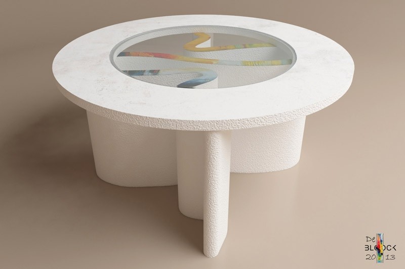 Koncept Deblok sastoji se od više promišljenih elemenata koji istražuju odnos između kamena, drva, stakla i boje. U pojedinim komadima Rošin je uključio i likovni rukopis naše slikarice Dine Jakšić, čije apstraktne kompozicije donose novu dimenziju vizualnog identiteta kolekcije, dodatno naglašavajući unikatnost svakog elementa.
