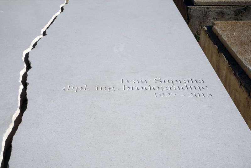 - grobnica za obitelj Šupraha jedno je od arhitektonski i simbolički najzanimljivijih ostvarenja među našim projektima. Dizajn potpisuje dipl.ing.arh. Ivan Šupraha u suradnji s Draženom Jakšićem, a rezultat je snažan i upečatljiv spomenik koji spaja suvremeni minimalizam s dubokom emotivnom porukom. Na prvi pogled, grobnica djeluje jednostavno – čisti, geometrijski oblik pravilnog pravokutnika izrađen od bijelog bračkog kamena. No, upravo u toj jednostavnosti krije se njezina monumentalnost i moć. Središnji motiv je lom koji prolazi cijelom dužinom grobnice, kao da je kamen prirodno napuknuo. Taj lom nije samo estetski detalj, već snažan simbol prekinutog života – trenutka u kojem se zemaljsko odvaja od nebeskog, ali ostaje povezano u jedinstvenom materijalu. Ravnoteža između strogih linija i tog snažnog, gotovo dramatičnog reza stvara napetost koja ovu grobnicu čini izrazito suvremenom i likovno moćnom. Površine su savršeno obrađene, glatke i precizne, što dodatno naglašava kontrast s nepravilnošću loma. Na prednjem dijelu smještene su vaze – jednostavni kameni elementi skladno uklopljeni u kompoziciju. Njihova pozicija, na rubu loma, kao i minimalistička forma, dodatno pridonose dojmu uravnoteženosti i smirenosti cijelog prostora. Grobnica je izrađena u velikom formatu iz monolitnih blokova bračkog kamena, čime se postigla monumentalnost i dojam postojanosti. U svojoj jednostavnosti i čistoći forme, ovaj spomenik zrači snagom, mirnoćom i dubokim značenjem. Grobnica za obitelj Šupraha primjer je kako arhitektonski pristup, kada je povezan s umjetničkim senzibilitetom, može stvoriti djelo koje nadilazi funkcionalnost i postaje emocionalni i duhovni simbol sjećanja.