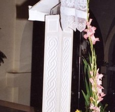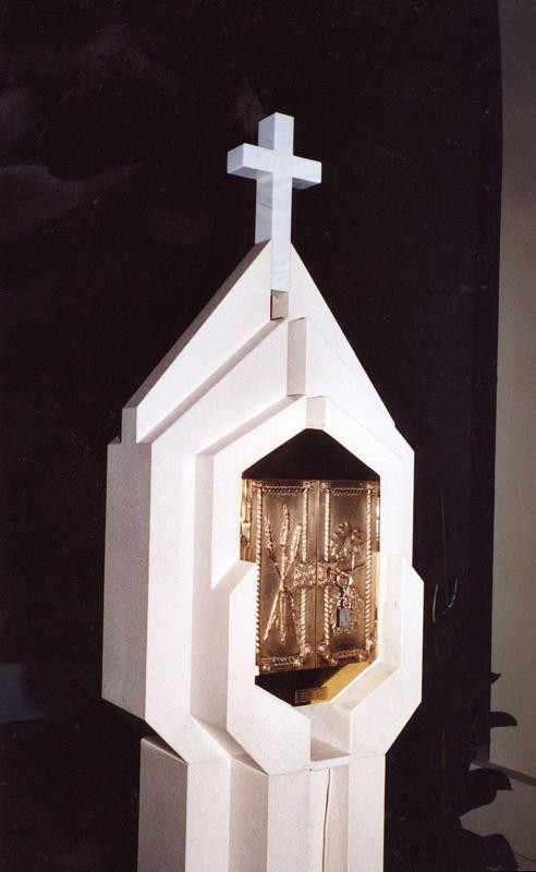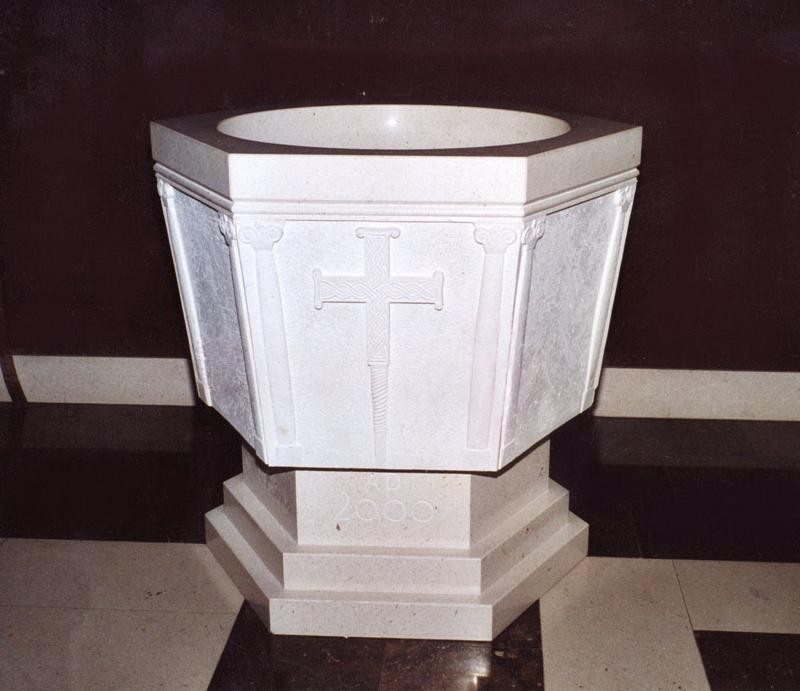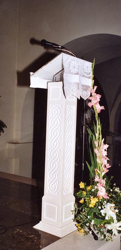 - rad klesarske radionice Jakšić prepoznat je i izvan granica Lijepe Naše. Posebno smo ponosni na projekt za Crkvu hrvatske misije u Parizu, gdje smo izveli kompletno unutarnje kameno uređenje – kameni oltar, kameni ambon, kamenu krstionicu i kameni tabernakul. Riječ je o projektu koji smo realizirali u suradnji s hrvatskim arhitektom koji živi i djeluje u Francuskoj. Ovaj projekt potvrđuje vrijednost bijelog bračkog kamena u inozemstvu, osobito u kontekstu sakralne arhitekture. Oltar je izveden u klasičnoj formi s naglaskom na hrvatski pleter – prepoznatljiv simbol nacionalnog identiteta, često korišten u starohrvatskoj umjetnosti. Pleter simbolizira vječnost, povezanost i neprekidno trajanje vjere, što ga čini idealnim motivom za kamene oltare i ambone u sakralnim objektima. Ambon prati istu simboliku. Slobodno stojeći, s jasno izraženim pleternim reljefom, ambon stvara snažnu vizualnu i duhovnu poveznicu između riječi i vjere. Kameni tabernakul izrađen je kao simbolična forma – dva kamena segmenta oblikovana su poput ruku koje drže Presveti Sakrament. Ova ideja simbolizira zaštitu, posvećenost i svečanost trenutka susreta s Kristom. Posebnu pažnju privlači kamena krstionica koja je inspirirana poznatom Višeslavovom krstionicom, jednim od najvažnijih povijesnih artefakata hrvatske ranokršćanske baštine. Krstionica kneza Višeslava datira iz 9. stoljeća i simbolizira kršćanske korijene hrvatskoga naroda. Naša replika vjerno prenosi njezine stilske i simboličke elemente, uklopljene u suvremeni liturgijski prostor. Klesarska radionica Jakšić ovim je projektom još jednom potvrdila kako se tradicija, kvaliteta i suvremeni dizajn mogu skladno spojiti u stvaranju vrijednih radova za sakralne objekte. Bijeli brački kamen u Parizu postao je snažan most između umjetnosti, vjere i nacionalne baštine.