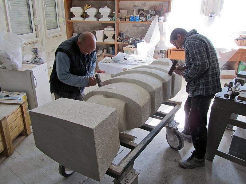 - izrada spomenika po maketi i izrada monumentalnih skulptura u kamenu jedan je od ključnih segmenata rada naše radionice. Zahvaljujući dugogodišnjem iskustvu, suvremenim strojevima i stručnom timu, možemo izvesti i najzahtjevnije forme u kamenu – od manjih umjetničkih radova do monumentalnih skulptura namijenjenih javnim i privatnim prostorima. Mnogi kipari, unatoč svom talentu i umjetničkoj viziji, nemaju tehničke uvjete za realizaciju velikih skulptura. Zbog toga često angažiraju našu radionicu, gdje se izrada spomenika po maketi odvija u precizno definiranom procesu. Umjetnik najprije izradi manju maketu, a mi prema toj maketi oblikujemo skulpturu u kamenu u željenim dimenzijama. Ovakvi projekti najčešće su namijenjeni trgovima, ulicama, dvorištima institucija, javnim parkovima ili kulturnim ustanovama, no jednaku pažnju posvećujemo i narudžbama za privatne vrtove, obiteljske rezidencije i privatne kolekcije. Brojni istaknuti umjetnici povjerili su nam izvedbu svojih skulptura – među njima Šime Vulas, akademski kipar i jedan od najvažnijih hrvatskih modernista, Dalibor Stošić, akademski kipar poznat po kompleksnim figurativnim formama, Matko Mijić, akademski kipar i profesor prepoznat po snažnom kiparskom rukopisu, Kuzma Kovačić, akademik i jedan od najcjenjenijih suvremenih hrvatskih kipara, Ana Elizabet, kiparica prepoznatljivog senzibiliteta, te Slavomir Drinković, akademski kipar čija djela nose snažne simboličke vrijednosti. Njihove ideje često su tehnički vrlo kompleksne, ponekad i na granici izvedivog, no naša radionica opremljena je znanjem i mogućnostima da odgovori na sve izazove. Od preciznog prijenosa makete u veliki kameni volumen, preko ručne obrade detalja, do završne montaže u prostoru – svaka faza izvedena je s potpunim razumijevanjem materijala i umjetničke namjere. Bez obzira radi li se o izradi spomenika po maketi, monumentalnoj skulpturi za javni prostor ili djelu namijenjenom privatnom vlasniku, naš je cilj uvijek isti: vjerno prenijeti autorsku ideju i stvoriti trajno umjetničko djelo koje će održati svoj karakter kroz generacije.