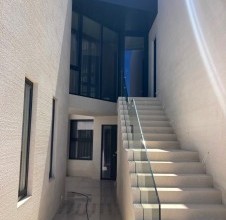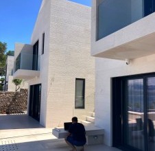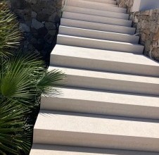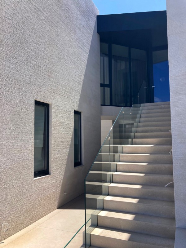 - ova kamena kuća u Sutivanu primjer je suvremene mediteranske arhitekture u kojoj prirodni kamen postaje osnovni element identiteta prostora. Projekt je osmislio arhitekt Vinko Peračić, a sve kamenarske radove – od ideje i nacrta do završne izvedbe – izvela je naša radionica pod vodstvom Dražena Jakšića. Kuća je oblikovana kroz čiste linije i geometrijsku jednostavnost, pri čemu ključnu ulogu ima kamena fasada izvedena od bijelog bračkog kamena. Na vanjskim površinama primijenjena je naša autorska tehnika poznata kao „grebana fasada“, u kojoj se površina kamena ručno obrađuje u finim horizontalnim linijama. Ta struktura stvara bogatu teksturu s nježnim ritmom svjetla i sjene, mijenjajući se ovisno o dnevnom svjetlu. Rezultat je kamena fasada koja istodobno odiše preciznošću, toplinom i elegancijom. Ovaj pristup pokazuje koliko kamen za fasadu i kamen za vanjsko uređenje mogu oblikovati arhitekturu na suvremen i minimalistički način. Kamene stepenice izvedene su u savršenom spoju s staklenim ogradama, čime se postiže osjećaj lakoće i prozračnosti, dok otvori bez kamenih profila naglašavaju modernu arhitektonsku logiku – čiste, besprijekorne linije bez suvišnih detalja. Unutrašnjost je u potpunosti obložena bračkim kamenom, koji je korišten u kamenu podova, zidnim oblogama i detaljima koji čine profinjeni interijer od kamena. Kombinacija glatko brušenih i blago strukturiranih površina donosi taktilnu raznolikost i osjećaj luksuza. Cijeli prostor odiše smirenošću i skladom, spajajući prirodni kamen za interijer i eksterijer u jedinstvenu arhitektonsku cjelinu. Ovaj projekt potvrđuje kako kamen za vile i kuće nije samo građevni materijal, već i sredstvo izraza – način da se postigne luksuzno unutrašnje uređenje od kamena i trajna ljepota prostora. Kamene obloge, precizno izvedeni spojevi i savršeno usklađene površine svjedoče o majstorstvu i posvećenosti detalju koja definira naš rad.