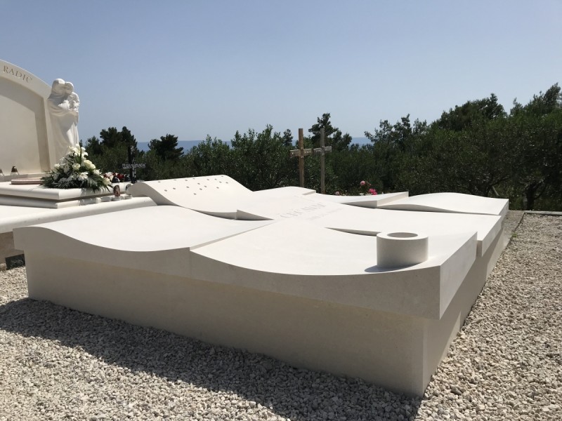 Siamo orgogliosi di presentare un’altra splendida tomba realizzata nella nostra bottega, scolpita nella celebre pietra bianca di Brač Sv. Petar. Si tratta di un progetto frutto del lavoro accurato e dedicato dell’intero team, che conferma ancora una volta la nostra lunga esperienza nella realizzazione di tombe, monumenti funebri e nel design contemporaneo della pietra. Il concept è stato sviluppato da Dražen Jakšić, in pieno accordo con la famiglia, che desiderava un memoriale ricco di significato simbolico.