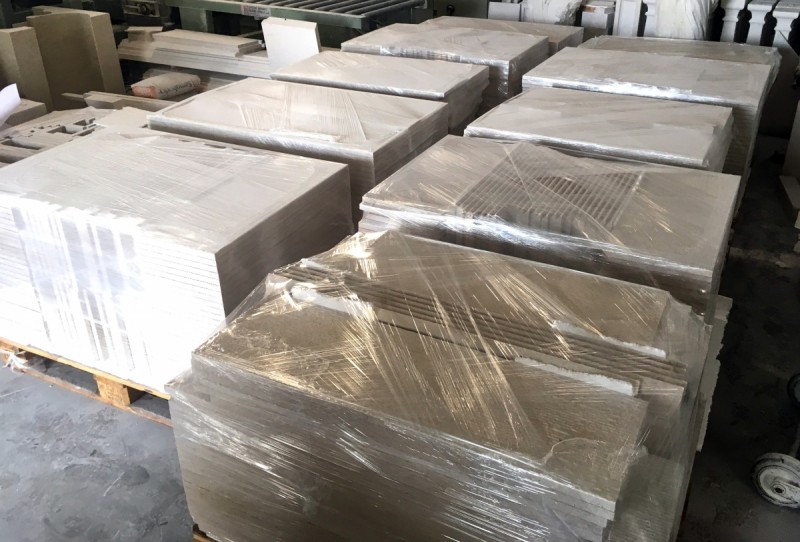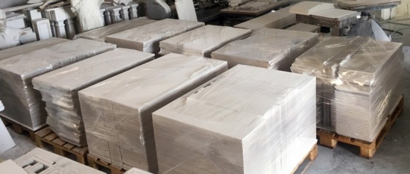 La spedizione comprende pietra per facciate, rivestimenti in pietra, pavimentazioni esterne per una villa di lusso e pietra per bagni. I committenti hanno inoltre richiesto vari elementi in pietra come stipiti, soglie e scale in pietra. Una parte della facciata sarà realizzata con una finitura grezza rigata, mentre il resto sarà in pietra bocciardata, creando un elegante contrasto visivo.