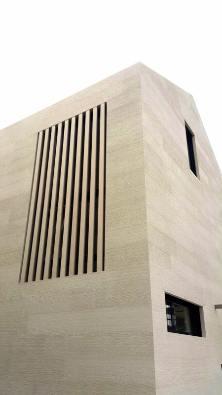 Elemento distintivo del progetto è l’innovativa “facciata Grebana”, una moderna tecnica di finitura ideata da Dražen Jakšić. La superficie delle lastre viene incisa manualmente in sottili linee parallele, creando una texture raffinata e contemporanea che esalta la naturalezza e il calore della pietra. Questa lavorazione unica è già molto apprezzata e richiesta dai nostri clienti.