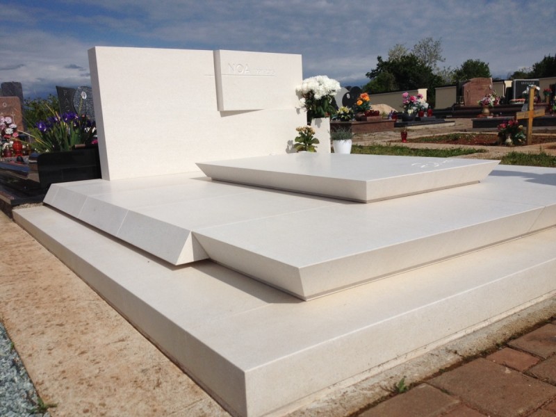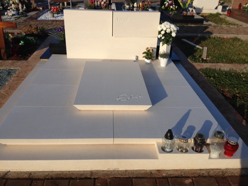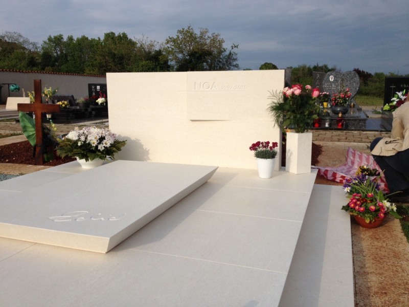 - la bottega di lavorazione della pietra Jakšić presenta con orgoglio la tomba della famiglia Zelić, una delle nostre opere che si distingue per la sua monumentalità e per il design moderno. Questa grande tomba, realizzata in pietra di Brač bianca, unisce linee contemporanee e profonda simbologia in un insieme unico. Fin dal primo sguardo è evidente che questa tomba si differenzia dalle soluzioni convenzionali. I bordi non seguono il classico schema rettangolare; al contrario, le superfici si alzano e si abbassano, creando dinamismo e movimento nella solidità della pietra. Il cognome della famiglia, inciso sulla lastra tombale principale, non appare in uno stile tipografico tradizionale ma ricorda una firma scritta a mano. Questo dettaglio conferisce al monumento un carattere intimo e personale. La lapide porta con sé una simbologia particolarmente forte. Si presenta come una superficie piana divisa in quattro parti, a rappresentare i quattro membri della famiglia. Ma una di queste parti è spostata, a simboleggiare la perdita tragica di un giovane membro della famiglia. Questo gesto nella pietra, semplice ma incisivo, trasmette dolore e assenza, ma al tempo stesso testimonia il legame eterno con chi rimane. Un aspetto fondamentale del processo è stato il progetto stesso, nato dalla collaborazione tra un membro della famiglia e il nostro designer principale, Dražen Jakšić. Da questa collaborazione è nata una tomba che non è solo un monumento, ma una storia personale e una testimonianza duratura di una grande tragedia familiare. La tomba della famiglia Zelić dimostra come la pietra di Brač bianca, nelle mani di maestri scalpellini e attraverso un design attentamente pensato, possa esprimere le emozioni più profonde e diventare un simbolo eterno di amore, memoria e rispetto.