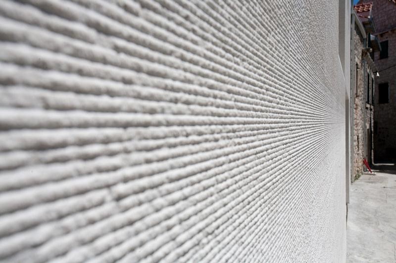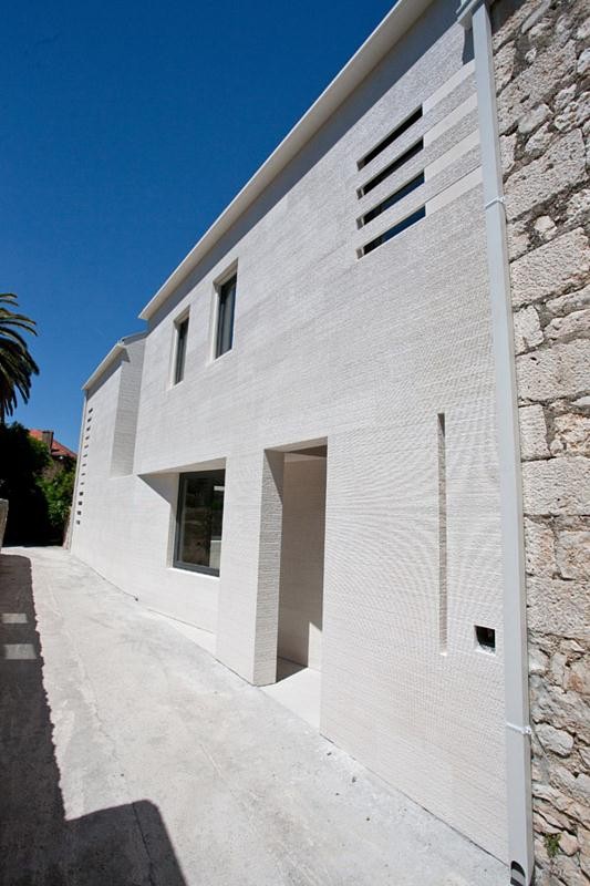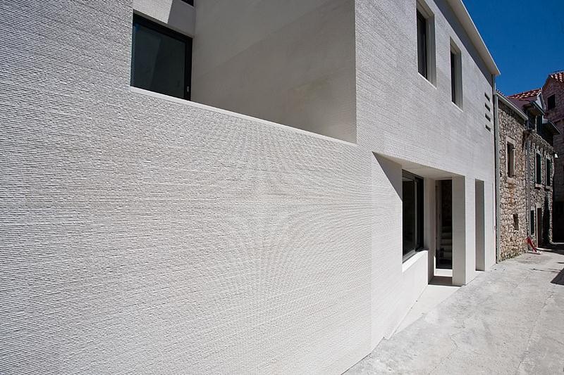 - nel centro storico di Supetar, tra le strette vie in pietra e le case tradizionali, sorge una moderna casa in pietra che ridefinisce l’uso delle facciate in pietra nell’architettura contemporanea. Progettata dall’architetto Vinko Peračić, rappresenta un perfetto equilibrio tra linguaggio moderno e rispetto per il contesto mediterraneo. Tutti i lavori in pietra sono stati realizzati dal nostro laboratorio, che ha curato ogni fase – dalla lavorazione al montaggio – con la massima precisione. Tra i vari elementi lapidei, spicca in modo particolare la facciata in pietra, un’opera originale ideata e realizzata interamente nel nostro laboratorio. Questa particolare “facciata rigata”, autentica creazione della nostra bottega, è realizzata con pietra bianca di Brazza. Ogni superficie presenta sottili linee orizzontali che creano ritmo, movimento e profondità. Le giunzioni perfettamente allineate danno l’impressione di un’unica superficie continua, armoniosa e raffinata. All’ingresso, la facciata si fonde con gli elementi architettonici, come i pilastri in pietra, diventando essa stessa parte integrante della composizione architettonica. Il passaggio tra esterno e interno assume un valore scultoreo, come se l’edificio fosse scolpito da un unico blocco di pietra. Nel cuore di questa villa, la pietra definisce l’identità architettonica dell’edificio – pura, moderna e senza tempo. L’uso della pietra naturale per l’esterno conferisce eleganza e solidità, mantenendo un perfetto equilibrio con il contesto urbano antico. Questo progetto dimostra come la pietra per ville e case possa essere utilizzata in modo innovativo, trasformando un materiale tradizionale in una dichiarazione architettonica contemporanea di precisione e bellezza.