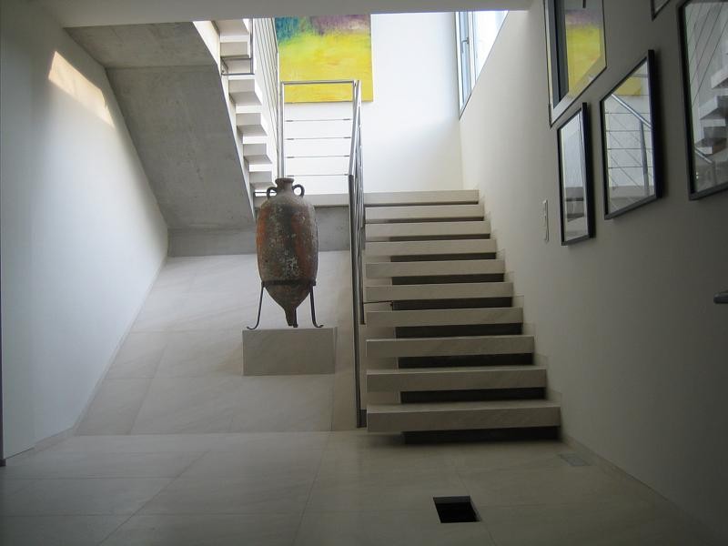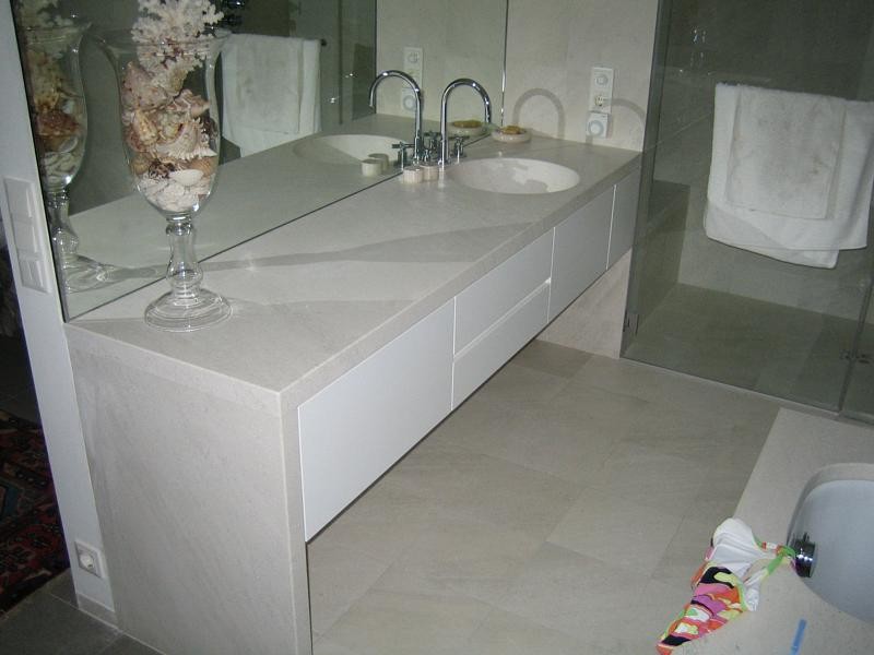 - sulle rive tranquille di un lago vicino a Vienna si trovano due ville collegate, appartenenti a una prestigiosa famiglia austriaca, progettate dall’architetto Franz Kiener. Questo progetto mostra come la pietra di Brazza negli interni possa trasformarsi in un elemento architettonico e decorativo centrale, fondendo architettura moderna e pietra naturale in un equilibrio perfetto tra lusso, semplicità e armonia. Tutti i lavori in pietra sono stati realizzati dal nostro laboratorio, sotto la guida esperta di Dražen Jakšić, dal progetto iniziale fino alla realizzazione finale. La pietra è presente in ogni parte delle residenze – nei pavimenti, nelle pareti, nei camini e nei bagni – confermando la nostra visione della pietra naturale per interni ed esterni come materiale che dà forma allo spazio e all’emozione. Gli interni delle ville si distinguono per eleganti rivestimenti in pietra e pavimenti in pietra. Nei tre bagni, la pietra riveste pavimenti, pareti, vasche da bagno e lavabi in pietra. Ogni lavabo è diverso e realizzato a mano: uno di forma rotonda e linee morbide; un altro ricavato da un blocco massiccio di pietra con incavo profondo; il terzo dalle linee essenziali e geometriche, dal carattere moderno e raffinato. L’effetto complessivo è un interno in pietra contemporaneo e di grande eleganza. Nel soggiorno spicca un camino rivestito in pietra, la cui superficie bianca e levigata riflette la luce naturale. Un secondo camino, situato in una zona più riservata della villa, riprende lo stesso linguaggio sobrio e moderno. La scala, realizzata con massivi gradini in pietra, appare leggera e sospesa, grazie alla precisione della lavorazione e alla finitura lucida. All’esterno, una panca in pietra e una colonna in pietra completano la composizione architettonica, collegando visivamente interno ed esterno. Queste ville dimostrano che un lusso in pietra naturale non risiede nell’eccesso, ma nella qualità artigianale e nel rispetto per il materiale. La qualità e la precisione del nostro laboratorio sono state riconosciute anche oltre i confini della Croazia, confermando la reputazione della pietra di Brazza come una delle più apprezzate nell’architettura contemporanea europea.