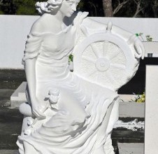 - eine der schönsten Grabstätten aus unserer Werkstatt, gefertigt aus weißem Brač-Stein, besticht durch ihre edle Struktur und künstlerische Harmonie. Diese Grabstätte der Familie Sekulović vereint meisterhafte Steinmetzarbeit mit einem ausdrucksstarken künstlerischen Ansatz, bei dem jedes Detail – von den Profilen bis zur Skulptur – handwerkliche Präzision und zeitlose Eleganz widerspiegelt. Die Basis des Grabes zeichnet sich durch reich profilierte Steinflächen aus, die ein ausgewogenes Spiel zwischen geschwungenen und geraden Linien zeigen. Diese Kombination verleiht der Anlage Monumentalität, während die feine Oberflächenbearbeitung Ruhe und Schlichtheit ausstrahlt. Das Licht gleitet sanft über den Stein und betont seine natürliche Struktur. Das dominierende Element der Komposition ist die beeindruckende Steinskulptur, geschaffen vom akademischen Bildhauer Lovre Jakšić. Sie zeigt eine junge Frau mit einem Steuerrad in der Hand, eine Allegorie der Seefahrt – Symbol für die Lebensreise und das maritime Erbe der Familie. Der Verstorbene, ein Schiffskapitän, wird symbolisch durch diese Figur dargestellt: Der geneigte Kopf drückt Trauer aus, während das im Stein gemeißelte vom Wind bewegte Haar den Geist des Meeres einfängt. Im Vordergrund befindet sich eine runde Steinvase, präzise aus demselben Stein gefertigt, die das Ensemble vollendet und die ästhetische Balance betont. Diese Grabstätte der Familie Sekulović zeigt, wie sich traditionelle Steinbearbeitung und bildhauerische Kunst in einem Werk von bleibender Schönheit vereinen. Jedes Detail – von der Form bis zur Symbolik – erzählt eine Geschichte von Leben, Reise und Erinnerung, tief verbunden mit dem Meer.