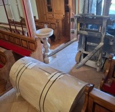 The installation of the ambo was particularly demanding due to the limited space, as well as the size and weight of the stone element. Precise placement required careful planning and coordination to ensure stability and a seamless integration into the sacral setting.