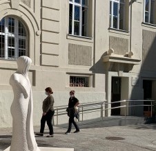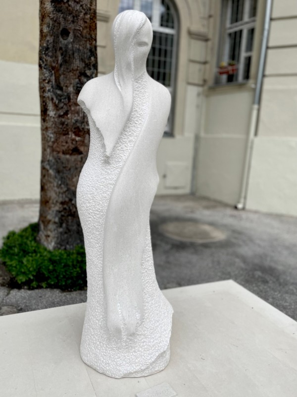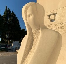 - among the many public sculptures created by academic sculptor Lovre Jakšić, a particularly prominent place belongs to the monumental sculpture of Judith, erected in the courtyard of Marko Marulić High School in Split to mark the 500th anniversary of the printing of Marulić’s Judita in Venice in 1521. This large-scale sculpture (210 cm), carved from a single block of white Brač stone, is made in a modern style with classical elements and represents the artist’s personal interpretation of one of the most important literary symbols of the Croatian Renaissance. Judith, as a biblical heroine and a symbol of courage, faith, and patriotism, takes on the role of an idealised woman in Marulić’s epic. As there is no specific physical description of her, Lovre Jakšić approaches the theme freely – intuitively and emotionally – shaping the female figure from his own artistic vision. This approach lends the sculpture a sense of mystery and surrealism. The monumental sculpture in white Brač stone presents a female figure with refined lines, her face partially veiled by hair, emphasising her introspective character. The stone surface carefully balances between smoothly polished planes and rough, rustic textures, creating a compelling contrast between the natural and the artistically shaped material. The sculpture of Judith does not function only as a visual object, but as a public sculpture and a lasting monument to literature. Positioned in a public space – the school courtyard named after Marko Marulić – the sculpture becomes a spatial landmark with a strong artistic presence. Its monumentality, sculptural quality and symbolic location make it one of the most significant recent achievements in Croatian public sculpture.