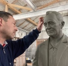 Monument to Brač inventor Mario Puratić, authored by academic sculptor Lovre Jakšić
