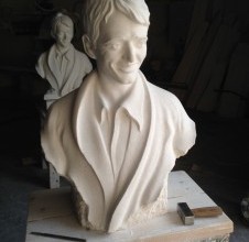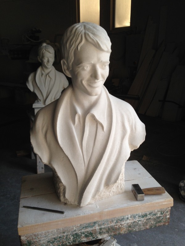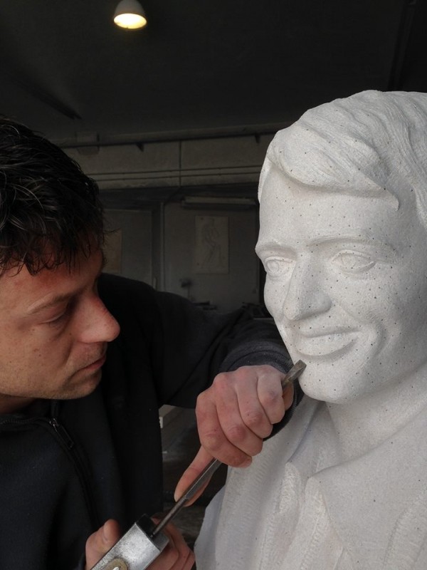 - the bust of Jean-Michel Nicolier, installed in Vukovar, is one of many public sculptures created by our academic sculptor Lovre Jakšić, but at the same time one of the most significant due to the importance of the person it honours. Jean-Michel Nicolier was a French volunteer who came to defend the city of Vukovar in 1991. His sacrifice and dedication left an indelible mark on Croatian history. The stone bust was created as a portrait sculpture in white Brač stone and stands on a simple yet powerful stone pedestal, also made in our stonemasonry workshop. The entire monument is the result of precise and expert craftsmanship and portrays Nicolier’s likeness with warmth and reverence. The process of creating such a portrait sculpture is very complex. The first step is modelling a life-size clay portrait, followed by the creation of a plaster mould, then a plaster model. That model serves as the reference for the stone version. Using the pointing technique, every facial detail is transferred from plaster to stone, ensuring faithful representation and expressiveness of form. What makes this bust unique is the depiction of Jean-Michel Nicolier’s characteristic smile – a warm, human expression that graced his face even in the most difficult moments. That smile, now permanently carved in stone, evokes the spirit and humanity this young man carried within him. The monument to Jean-Michel Nicolier is not merely a work of sculpture – it is a lasting tribute to one of the most noble foreign fighters of the Croatian War of Independence, a man who chose freedom and solidarity over personal safety.