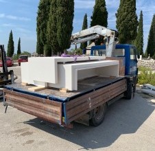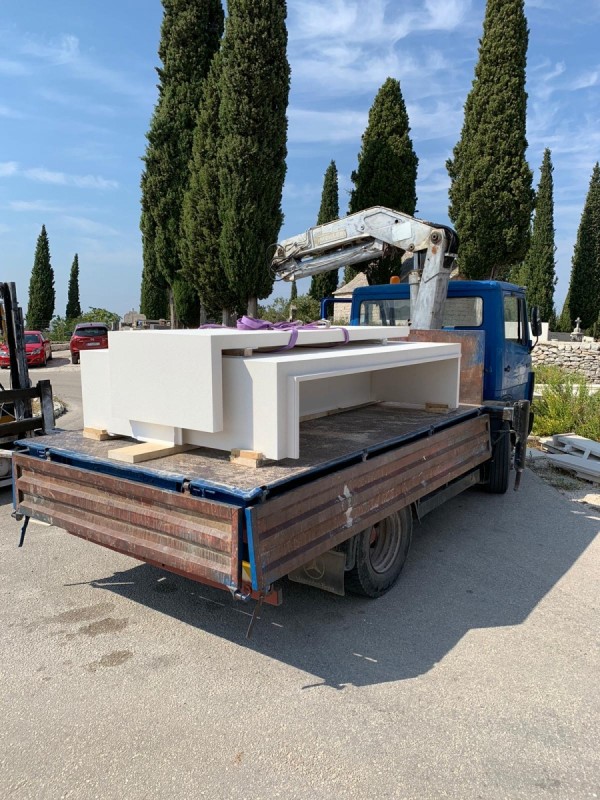 Scegliamo la migliore pietra bianca di Brač, nota per la sua bellezza e durata. Per noi è importante utilizzare materiale locale croato, evitando pietre importate. Ogni blocco viene attentamente controllato per garantire una superficie impeccabile.