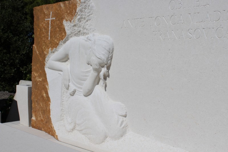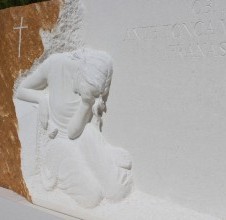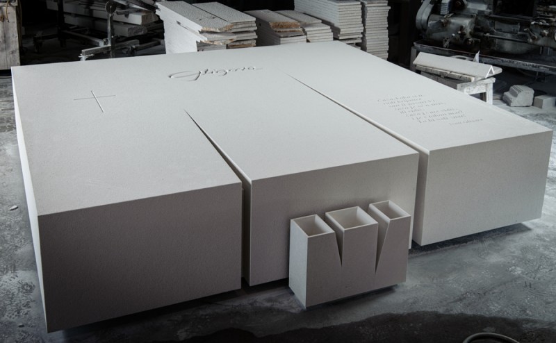 Quando la pietra è pronta, realizziamo uno per uno tutti gli elementi della tomba e poi li uniamo in un insieme armonioso. In questa fase i nostri maestri scalpellini modellano la pietra, sia meccanicamente che a mano, finché la tomba non assume la sua forma definitiva. Se la tomba include una scultura, il lavoro inizia con la puntinatura (trasferimento delle misure dal modello alla pietra) e prosegue con la rifinitura – liscia o ruvida, secondo le richieste.