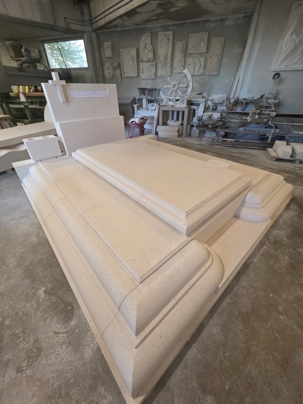 Le immagini mostrano la fase di montaggio di prova, che eseguiamo sempre prima dell’installazione definitiva. In questo modo il cliente può vedere la tomba nelle sue reali dimensioni, confermare i dettagli e percepire l’armonia delle forme e delle proporzioni. Allo stesso tempo, possiamo controllare ogni giunzione, profilo e superficie, assicurandoci che tutto sia perfettamente allineato.