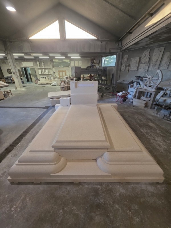 Nella nostra bottega di scultura, è in corso la realizzazione di una tomba in pietra bianca di Brač, destinata al cimitero Mirogoj di Zagabria.