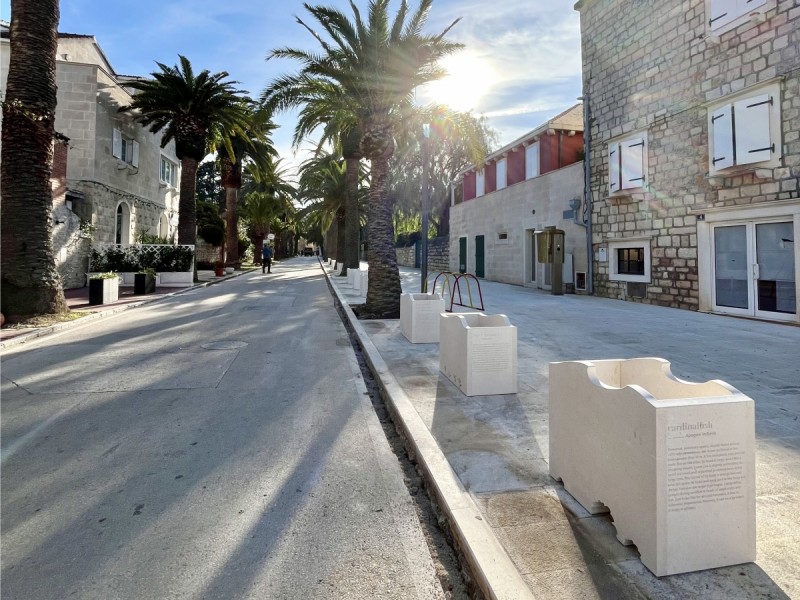 Il progetto per la realizzazione di cinquanta fioriere in pietra uniche – denominate “pitari” – è stato realizzato nella nostra officina specializzata di scultura in pietra e installato lungo la passeggiata di Sutivan, sull’isola di Brač. Ogni pitar è realizzato in pietra locale e simboleggia un segmento della vita sottomarina – una specie di pesce, il suo habitat naturale (alghe marine) e l’attrezzo tradizionale con cui viene pescato. L’idea è nata dalla nostra dott.ssa art. Dina Jakšić Pavasović in collaborazione con il designer di comunicazione visiva Goran Pavasović.